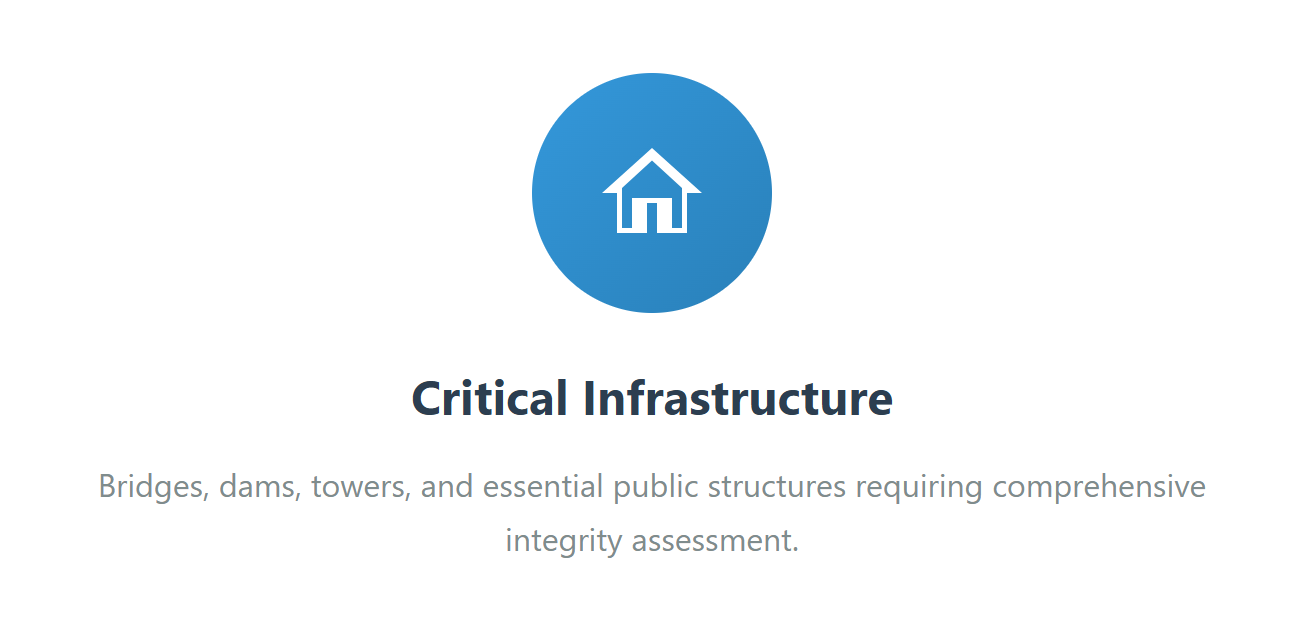 Our specialized drone-mounted systems deliver precise structural health assessments for critical infrastructure—from bridges and industrial facilities to complex commercial assets—all while eliminating the safety risks and operational disruptions associated with traditional inspection methods.