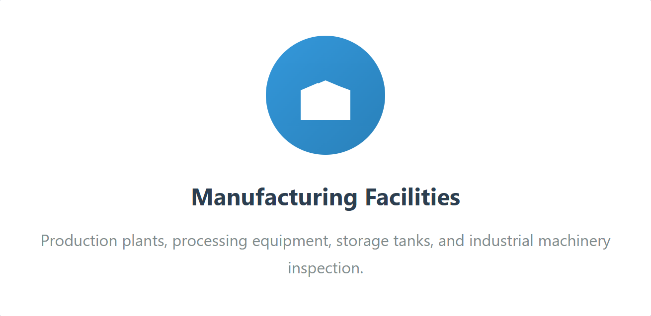 Production environments demand continuous operation with zero tolerance for unexpected equipment failures. Our ultrasonic testing and thermal imaging capabilities detect material defects, wear patterns, and structural anomalies in manufacturing equipment, storage tanks, and facility infrastructure, enabling predictive maintenance that prevents costly shutdowns.